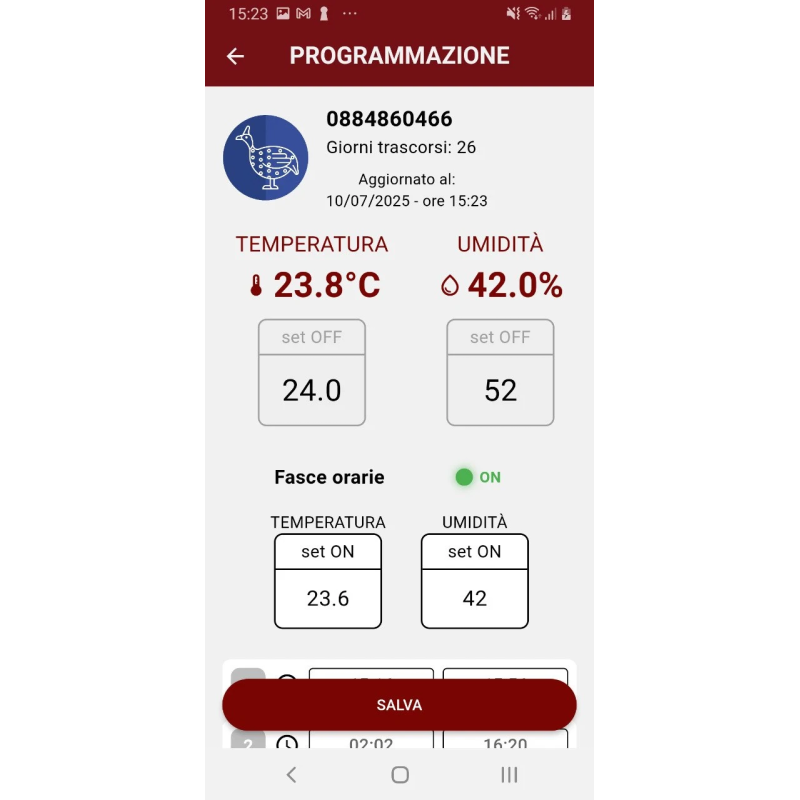 Programmierung: Temperatur und Luftfeuchtigkeit ändern, Zeitfenster mit unterschiedlichen Parametern festlegen.