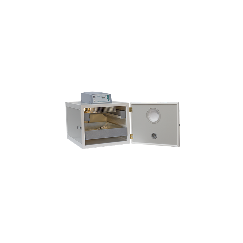 Dieses Modell ist mit einer digitalen Dezimaltemperaturregelung und einem Kontrollthermometer in °F ausgestattet. Die Befeuchtung erfolgt über spezielle beheizte Schalen.
