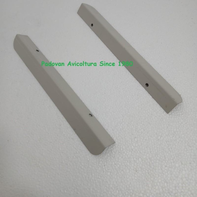 The lateral corner guides are the sliding tracks that guide the clear PVC door as it opens and closes. Their function is to ensure the door follows a precise path without lateral oscillation, evenly distribute the opening/closing forces, avoiding stress points on the PVC, and maintain perfect alignment between the door and frame to ensure a semi-hermetic seal. The guides are designed with an angled shape that hugs the edge of the door on two sides, providing stability and smoothness.