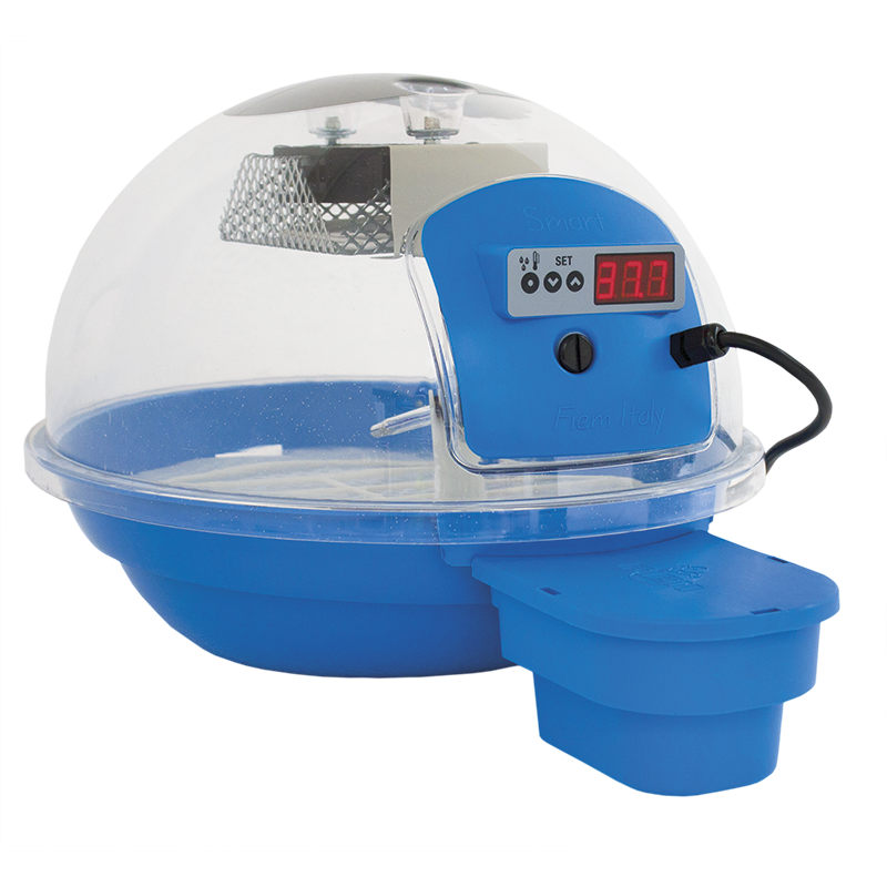 FIEM Smart Bird Digital incubator , automatic, suitable for incubating bird eggs. For use in environments with a minimum temperature of 20°C. New semi-automatic humidification system (optional), requiring some attention for humidity management; see our User Guide. Excellent internal visibility allows your children to watch the wonderful hatching of the chicks.