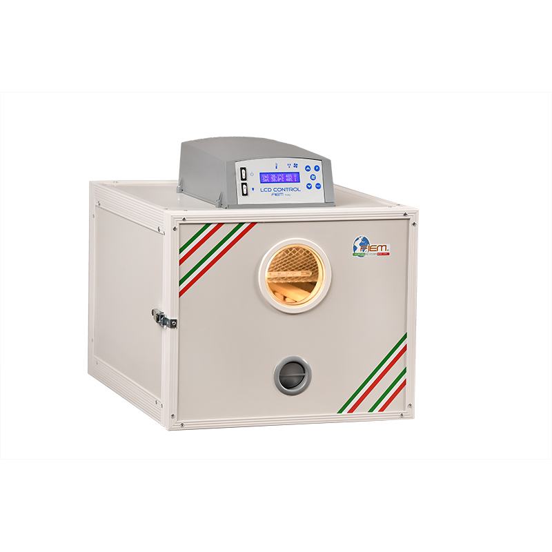 FIEM beekeeping incubator with LCD display and dual T/U temperature sensor. The cabin is made of chipboard or insulated steel panels. This machine is used for honey decrystalization and pollen drying (add a pollen drying drawer, sold as an optional extra). To incubate queen cells on traditional 41/42.5 beekeeping slats, choose the A100 model or higher, or purchase the removable frame, sold as an optional extra.