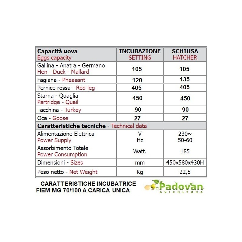 By purchasing this product, you will receive our exclusive guide created by Padovan Avicoltura as a FREE GIFT: a practical and illustrated manual with the best techniques for controlling and calibrating the temperature inside FIEM incubators.