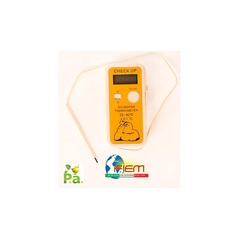A small tool that makes a big difference. The FIEM Check Up digital thermometer is perfect for those who want to accurately monitor their incubator's temperature, avoiding errors that can compromise hatching. The complimentary technical guide is an added bonus for those who want to learn how to calibrate correctly.