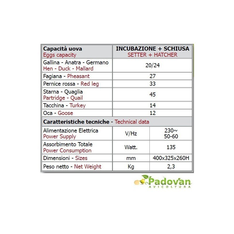 | Poule, Canard, Colvert | 20 à 24 œufs | Incubation + Éclosion |
